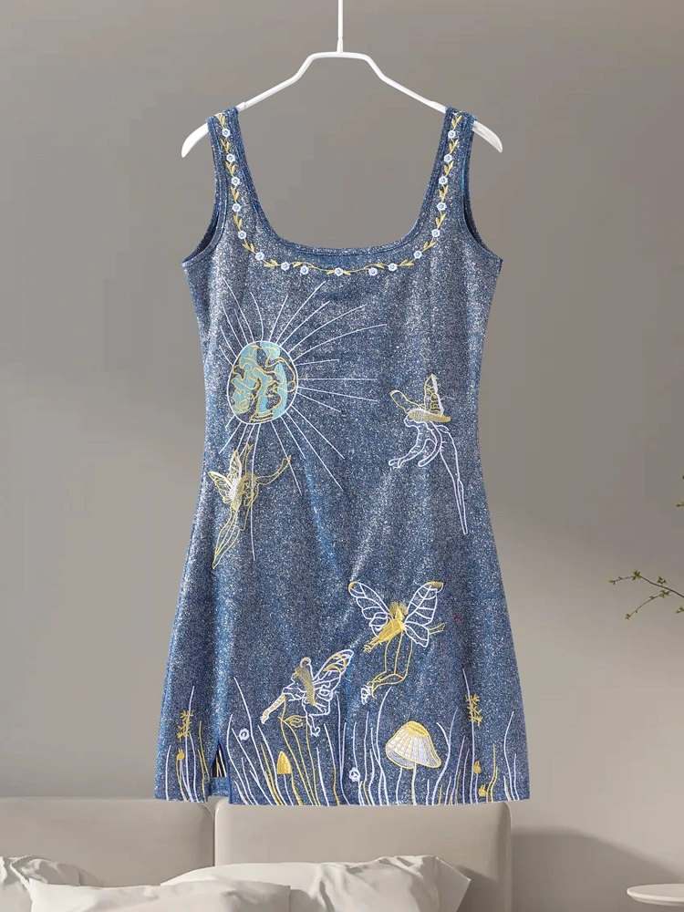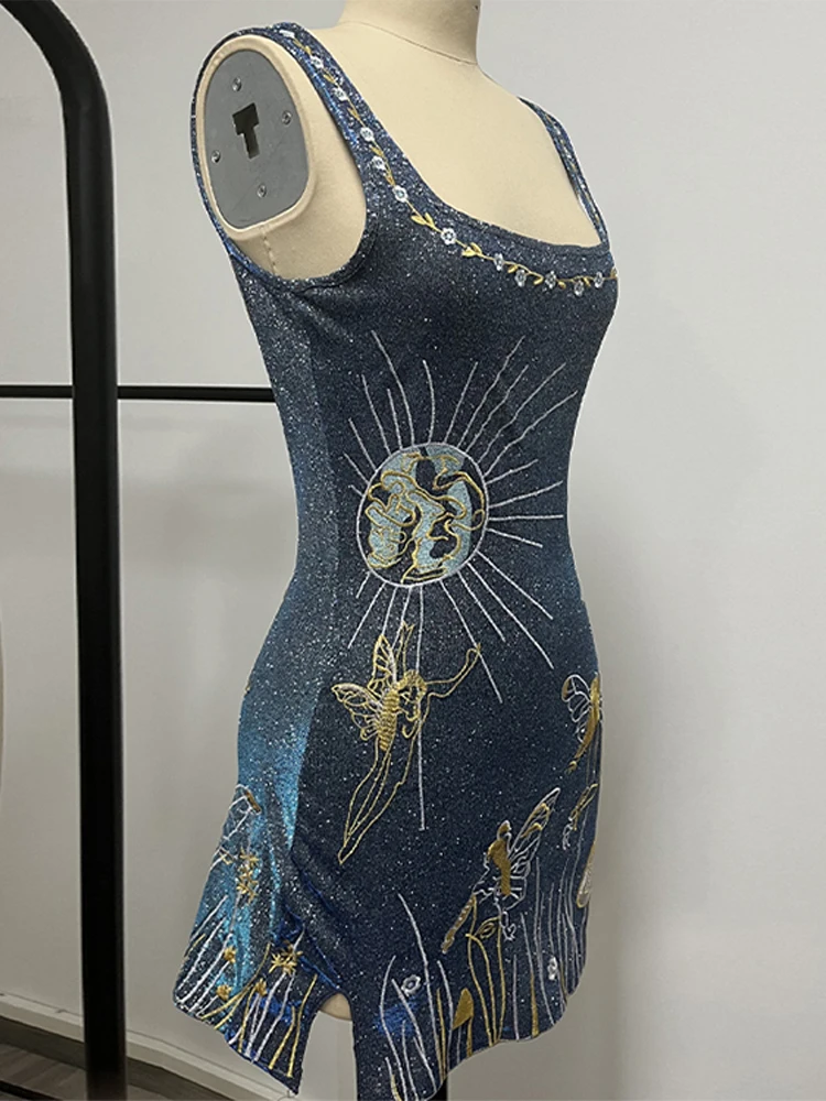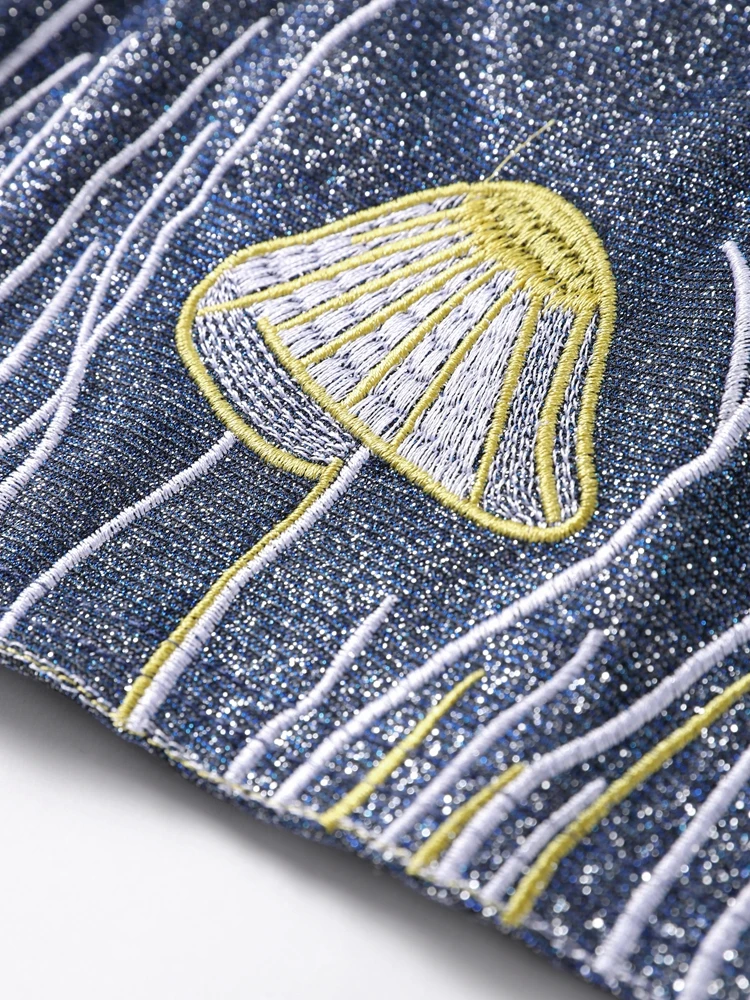 A estampa celestial com desenhos delicados de estrelas e elementos da natureza, como borboletas e cogumelos, te transporta para um universo mágico e cheio de encanto. Prepare-se para receber todos os olhares!